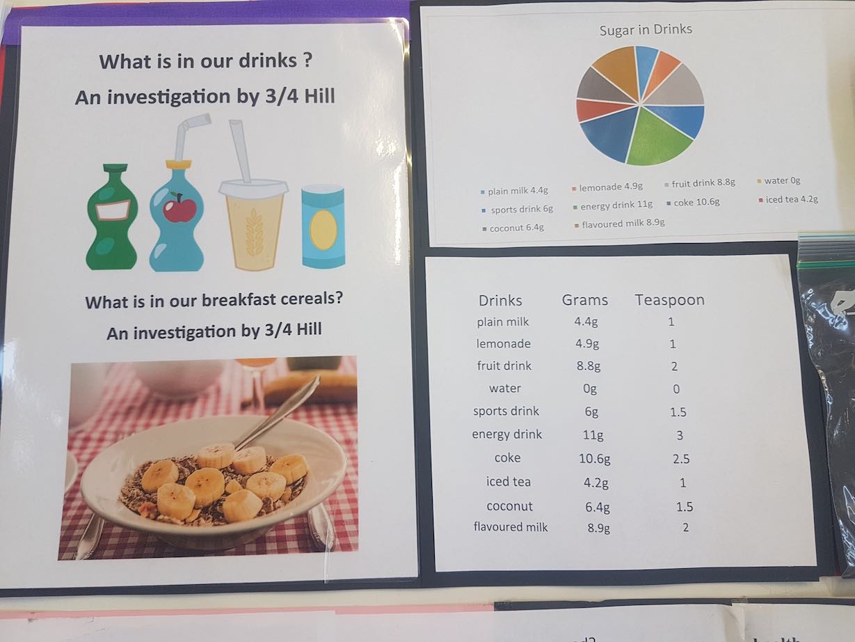 Description: In their maths focused unit students completed an individual inquiry project to examine some common household cereals or drinks to determine what they contained. They learnt about grams, percentages and what the term “recommended daily intake” means. Students extracted the information from the cereal or drink package and entered it into tables in Excel and then graphed their findings. Students then wrote a report to compare the various products. They considered the nutritional value of the products as well as the economic value for money for each product. Students also considered the marketing/representation of the information and wrote a persuasive piece on whether the information on the packaging is clear and accurate. Students were required to be decisive and select one product and justify why they chose it over others.