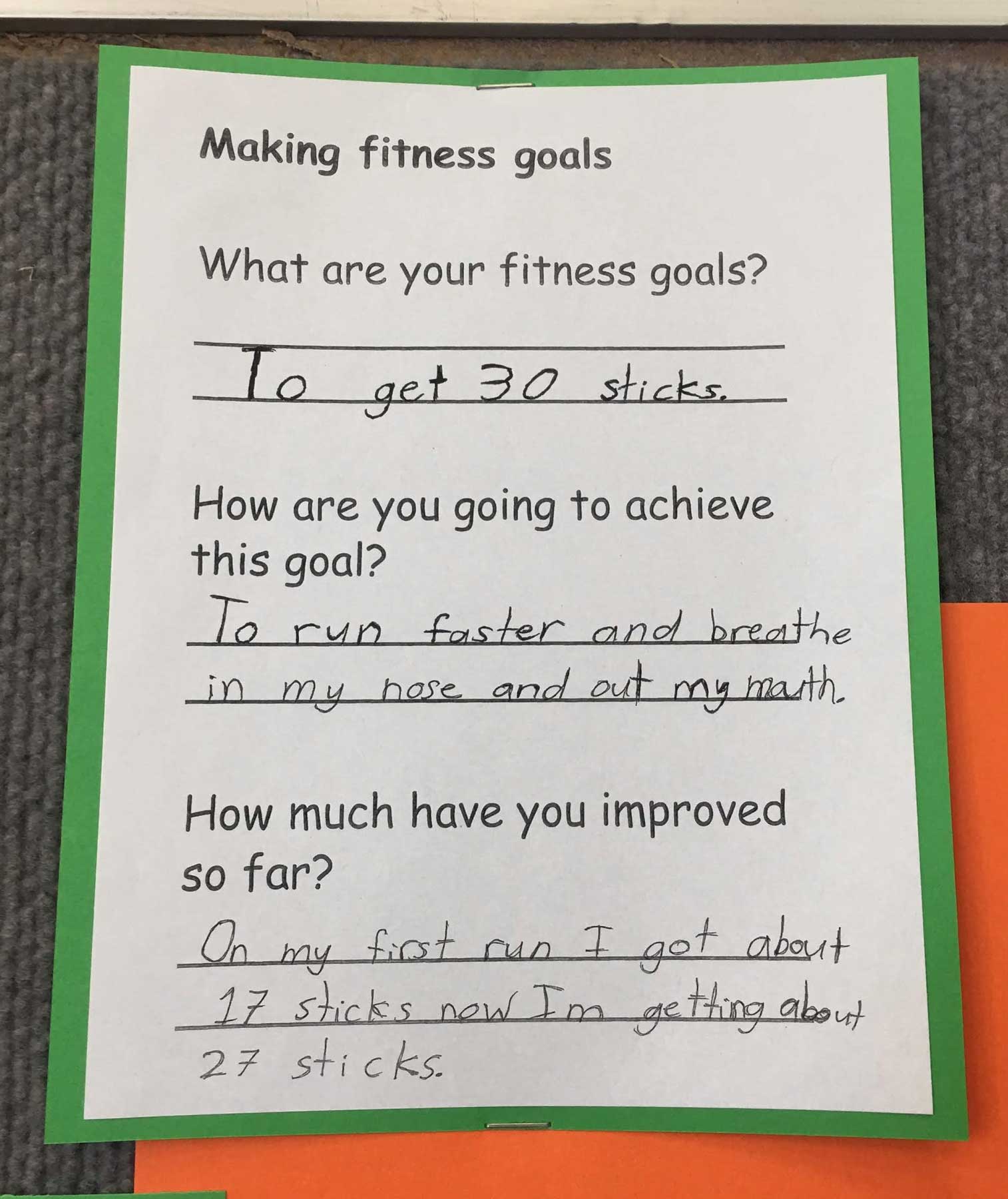 Measures of success: Personal achievement of fitness goals; Students demonstrate understanding of the benefits of being healthy and physically active.