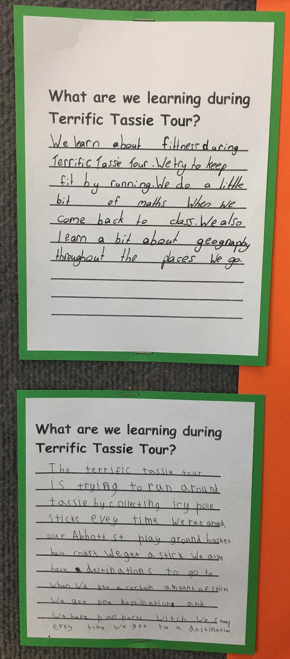 Description: Full class physical education activity where students ran the equivalent of the distance around Tasmania in their local environment or schoolyard. The activity developed skills in maths and geography as well as developing students understanding of the benefits of health and physical activity and building their fitness. Students collected icy pole sticks for each milestone they achieved, developing their maths skills and sense of achievement.