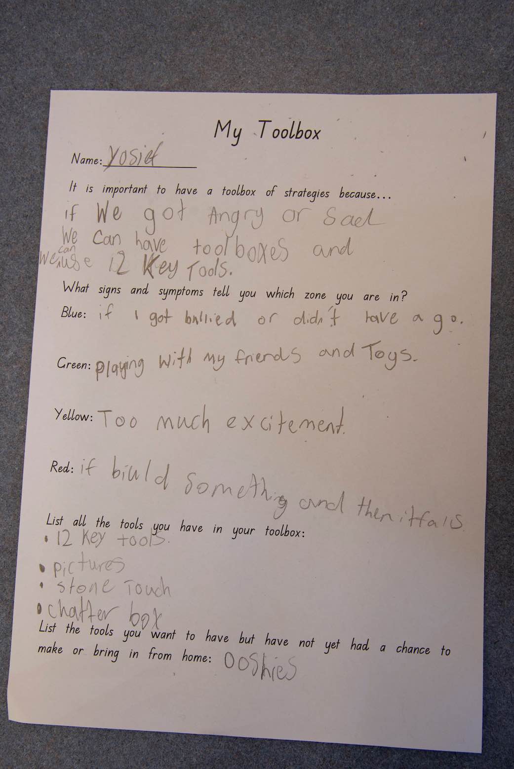 Toolbox of strategies (K-2)